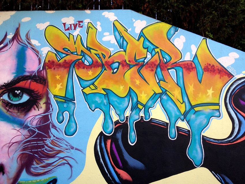 The final product is a contemporary painting that shows a variety of styles and subject matters reflecting a modern side to local art. Our goal to create a piece public art that local residents can enjoy and attract visitors to experience large scale murals first hand is reflected through the countless citizens who have give their support and feedback. We believe this is just a first step to creating more public art for the community.